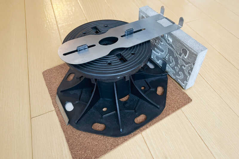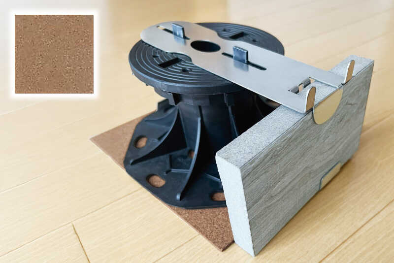 天然コルク製パットをデッキ台座のパットに使用することで、下地との設置性を高めて、下地部材を保護します。